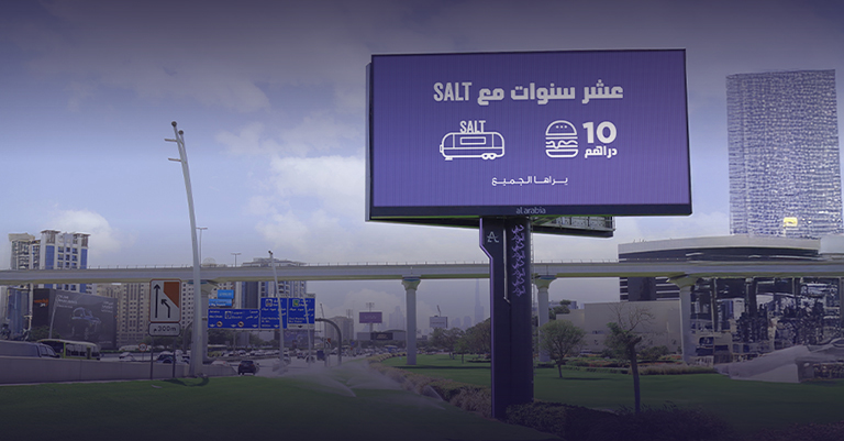 After 42 years of OOH success in Saudi Arabia, AlArabia marked its expansion into Dubai by launching the city’s largest digital screen network and partnering with Emirati brand SALT on a bold, witty campaign. The teaser, “Something salty is coming… To be seen by everyone,” dominated premium screens and even appeared on competitors’ billboards with clever twists. The campaign extended to branded packaging and burger giveaways, reinforcing AlArabia’s creative edge and strong media presence in Dubai.
